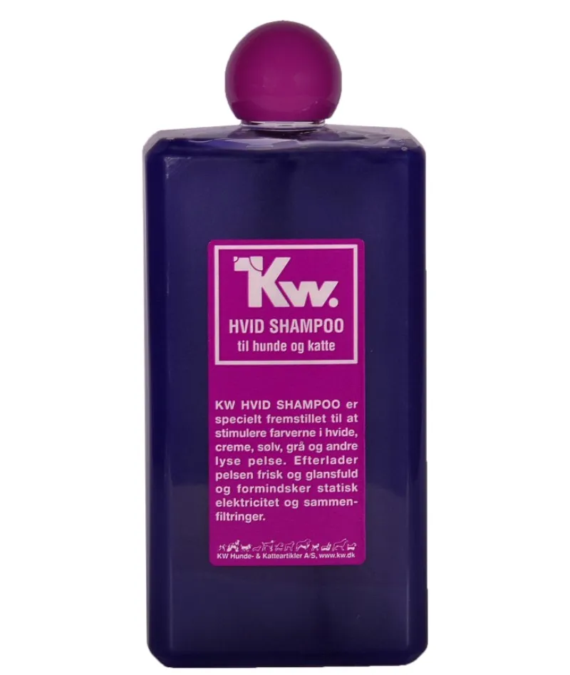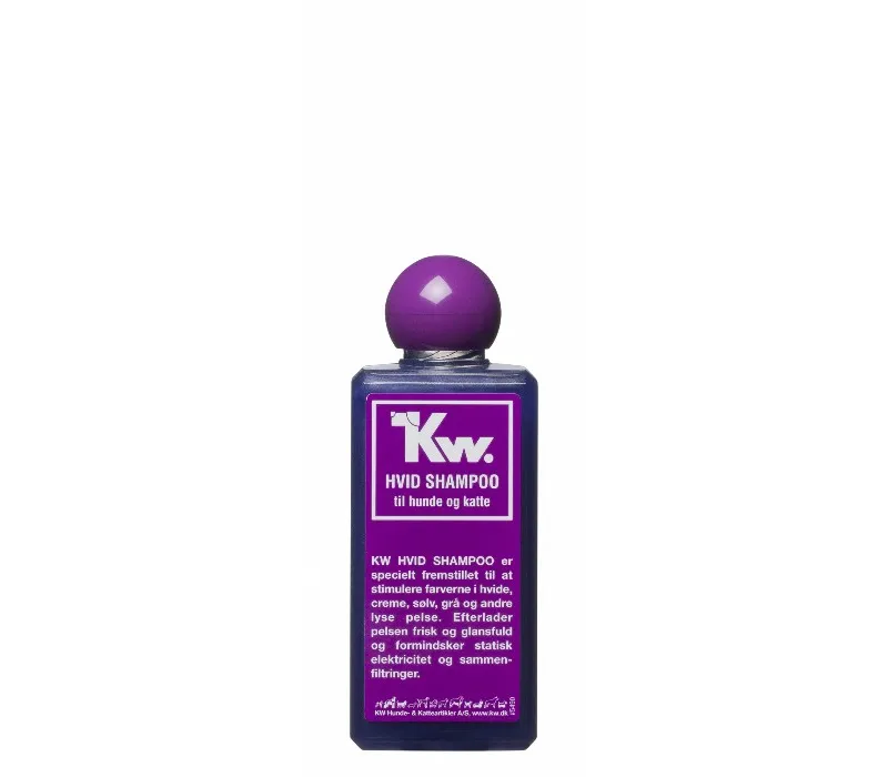 En effektiv sjampo spesielt utviklet for hvite og lyse pelser. KW Hvit Sjampo bidrar til å fremheve pelsens naturlige farge og glans, samtidig som den rengjør skånsomt og grundig.