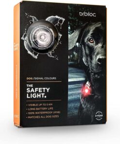Orbiloc Dual Safety Light er en type sikkerhetsbelysning som man fester til hundens halsbånd og synlig meget godt på lang avstand (opptil 5 km). Selv om den er liten og veier bare 19 gram og er derfor også egnet for mindre hunder. Du kan velge mellom konstant lys eller blinkende lys, den tåler vann og både ekstrem varme og kalde temperaturer og har en lang batterilevetid. Pakken inkluderer en elastisk og slitesterk gummiholder som man fester lampen i. Festeøyene på holderen kan tres på et smykke som er opptil 24 mm bredt og 4 mm tykt. Produktinformasjon: Sikt 5 km. Vanntett ned til 100 m. Støtsikker opp til 100 kg. 2 moduser – konstant lys og blinkende lys. Lang batterilevetid – 100 timer med kontinuerlig lys og 250 timer med blinkende. Formen på linsen gjør at lyset er synlig i 270-graders vinkel. Takler vanskelige temperaturer på 50 °C til -40 °C